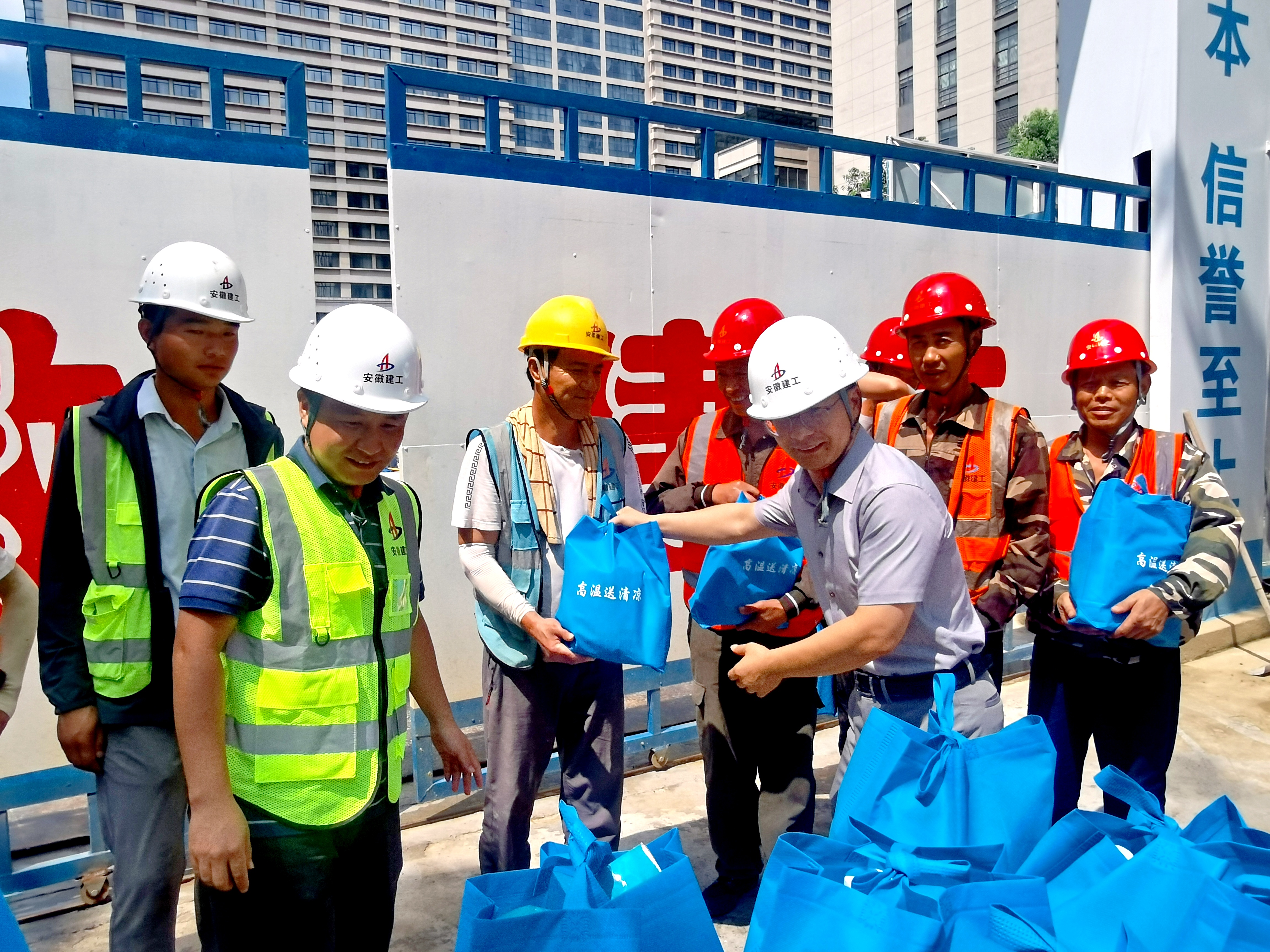 在項目施工現場,領導班子成員與一線職工親切交談,詳細詢問了大家的工作和生活情況,傾聽他們對企業改革發展的意見和建議,對廣大建設者們在高溫環境下堅守崗位、辛勤付出表示衷心感謝,并叮囑項目負責人要科學安排作業時間,切實做好防暑降溫措施,確保安全生產。隨后,班子成員為一線建設者送去礦泉水、綠豆、白糖、藿香正氣水、風油精等防暑降溫物品,叮囑他們要增強高溫天氣下的自我保護意識,把安全放在首位,以更加飽滿的精神狀態投入到項目建設中,為城市建設發展貢獻力量。