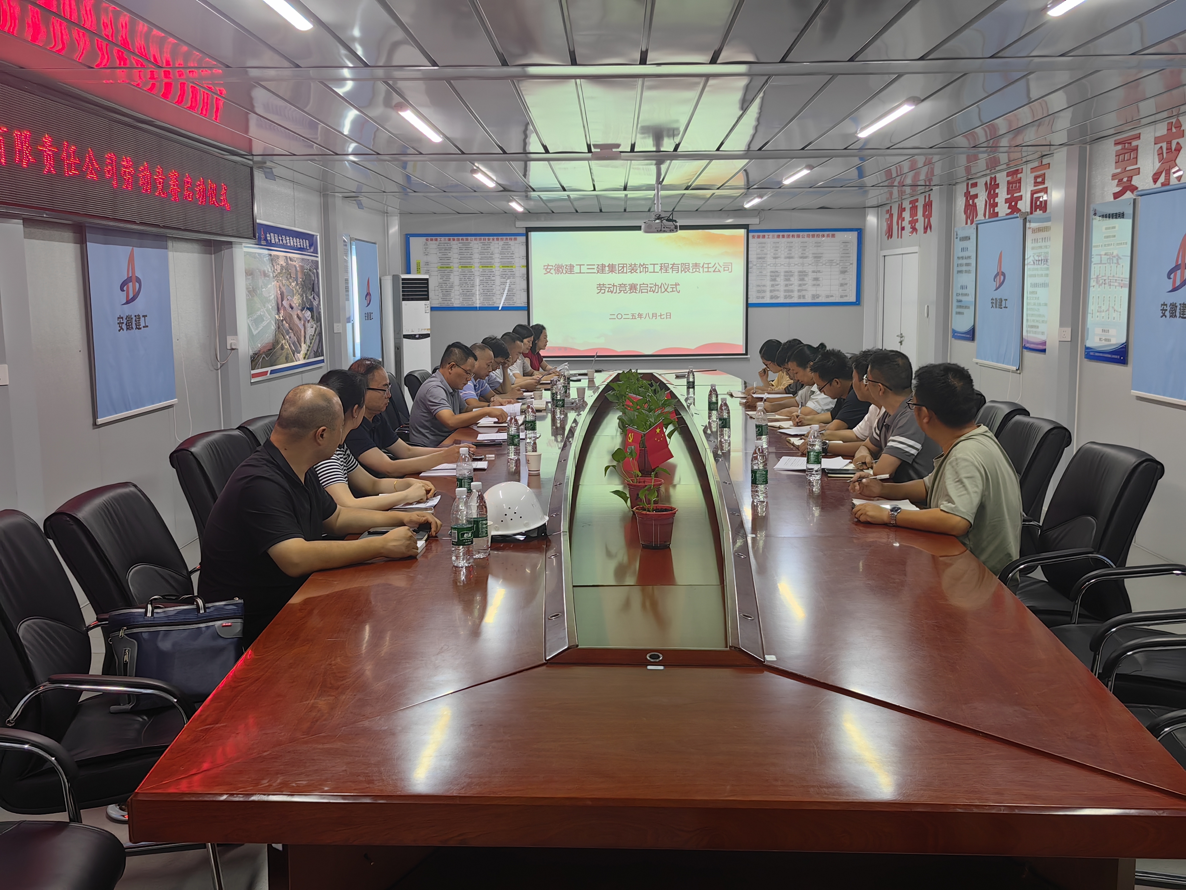 近日,裝飾公司在中國(guó)科大科技商學(xué)院項(xiàng)目開展2025年度“當(dāng)好主人翁,建功大發(fā)展”勞動(dòng)競(jìng)賽啟動(dòng)儀式暨動(dòng)員會(huì),全面部署競(jìng)賽任務(wù),號(hào)召全體員工以“比學(xué)趕幫超”的奮進(jìn)姿態(tài)全面沖刺年度各項(xiàng)目標(biāo)。