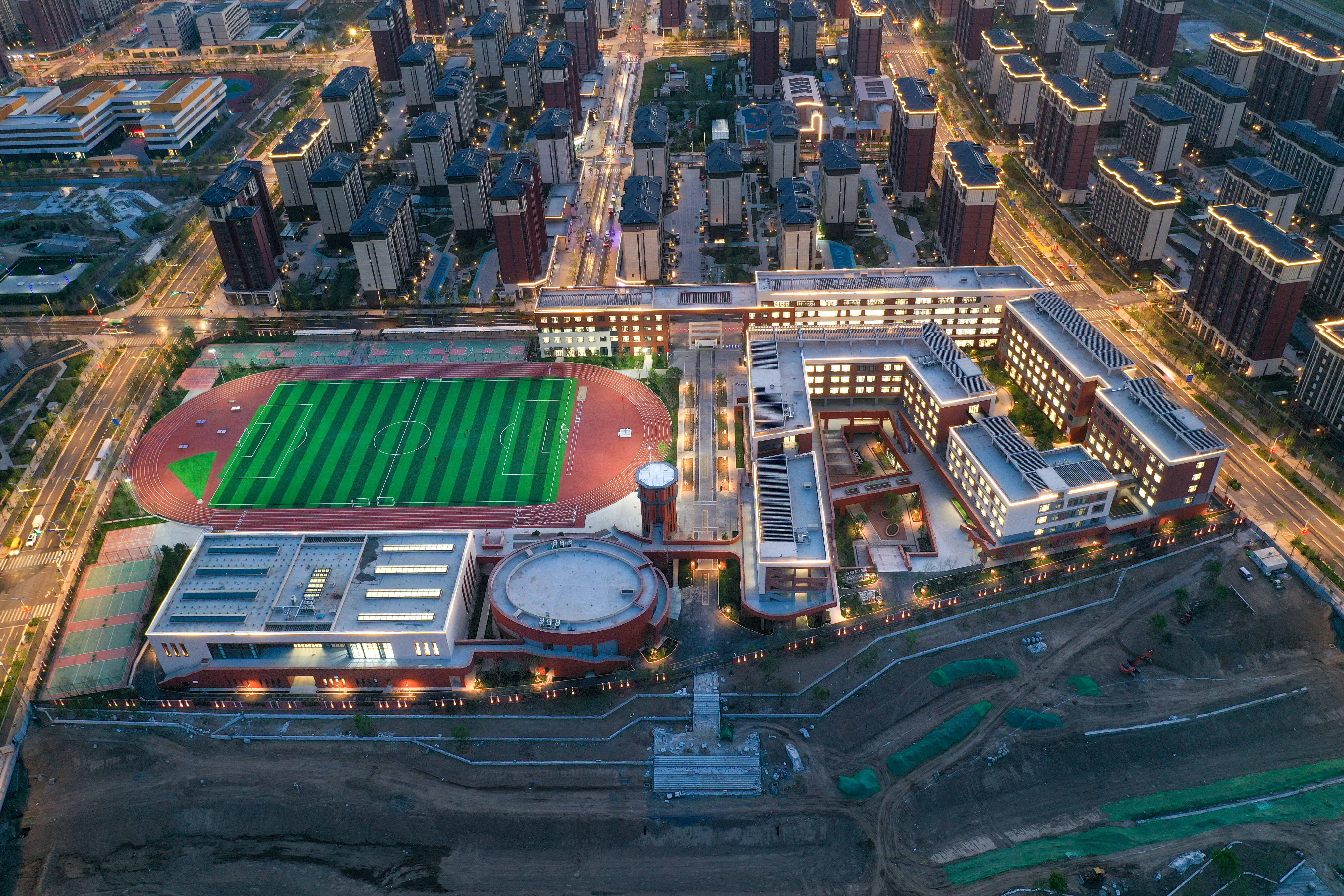 以雄安容西容興高級中學工程為例,項目總建筑面積約5.4萬平方米,為全日制48班完全中學,預計可容納學生約1950人。在建設過程中,項目團隊面臨著諸多挑戰,如復雜的地質條件、嚴苛的環保要求以及緊張的工期。但團隊成員迎難而上,通過科學合理的施工組織設計,采用先進的施工技術和設備,嚴格把控工程質量和進度。項目按照綠色建筑標準設計建設,全過程采用BIM技術,從規劃方案審批、圖紙審查,到過程監督和竣工備案,都實現了數字化、智慧化管理,為打造高品質校園奠定了堅實基礎。經過600多個日夜的艱苦努力,項目最終順利交付使用,贏得了當地政府和師生的高度贊譽。