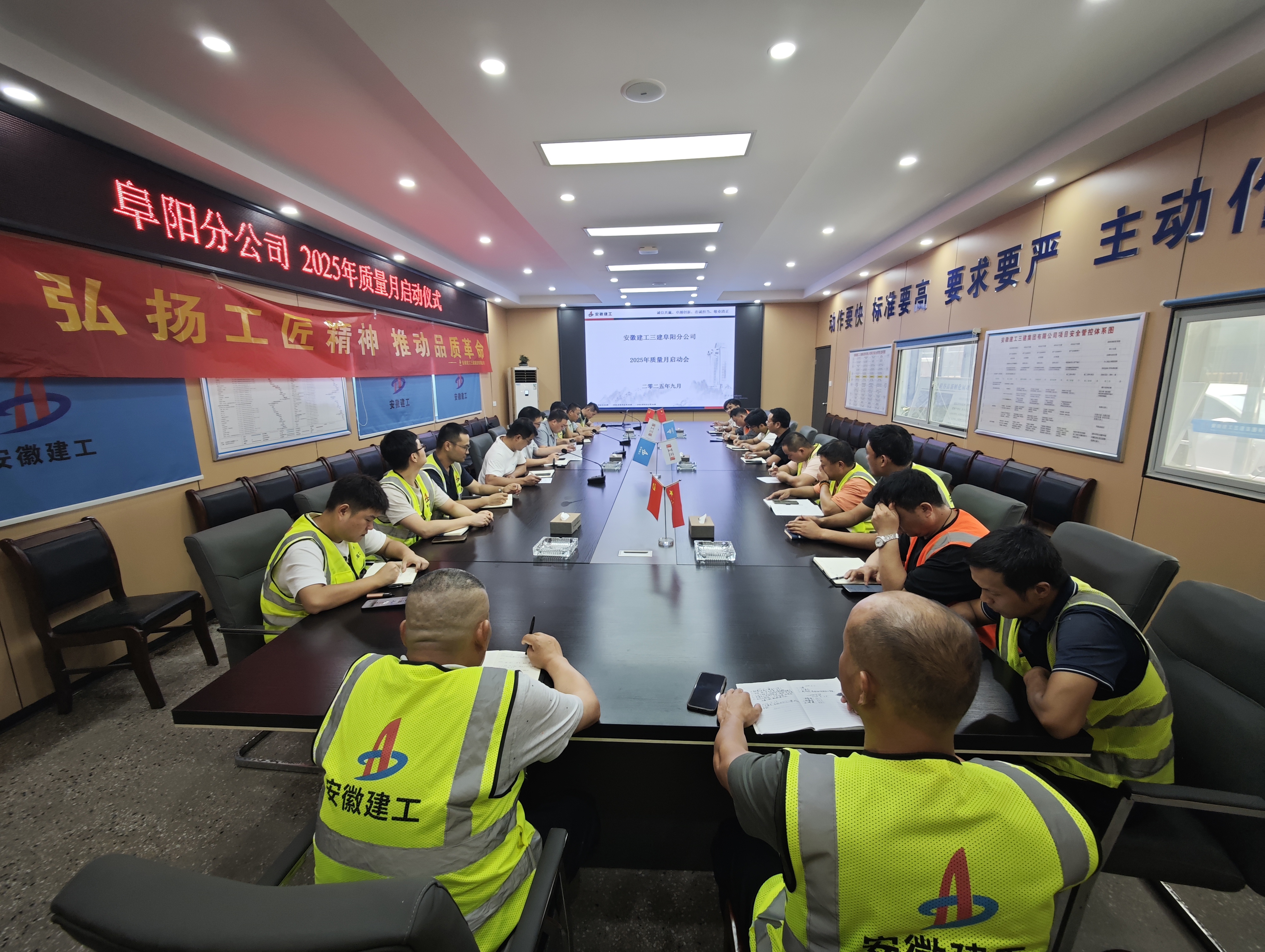 為全面貫徹黨的二十大和二十屆二中、三中全會精神,緊扣“質(zhì)量強鏈”與“新質(zhì)生產(chǎn)力”發(fā)展要求,加強全面質(zhì)量管理,近日,阜陽分公司組織機關工程管理部門、各項目經(jīng)理、技術負責人、施工負責人在合肥高新區(qū)科大硅谷孵化園二期項目舉行以“加強全面質(zhì)量管理,促進質(zhì)量強國建設”為主題的“質(zhì)量月”活動啟動儀式。
