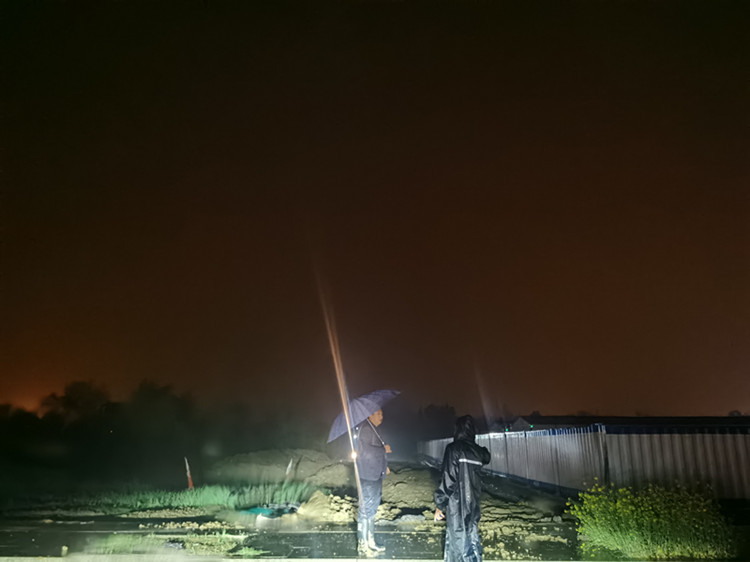 因近日連續(xù)強(qiáng)降雨天氣留給機(jī)械與人員的施工面較差,加之夜間施工,視野較差,給施工增大了難度。水利交通公司副經(jīng)理魏連成說(shuō):“汛情就是命令,防汛就是責(zé)任,更是作為新時(shí)代建設(shè)者應(yīng)盡義務(wù)”。正因?yàn)橛幸蝗簥^勇前行、攻堅(jiān)克難的新時(shí)代建設(shè)者,一群群眾與企業(yè)眼里“最可愛(ài)的人”,是他們?cè)诜姥匆痪€扛責(zé)在肩,筑牢群眾的“安全線”。