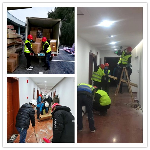 為了趕進度,元宵節當天晚上10點依然在大干搶工。裝飾公司萬和生經理、安裝公司彭純杰副經理和項目全體黨員帶頭加班,全體項目管理人員一起上陣清理現場?!斑@是一個不平凡的元宵節!”一位戴著口罩的三建管理人員這樣說。口罩已成項目標配。為了確保項目職工身體健康,項目采取分餐分散的方式就餐,每天安排專人對全體人員進行四次測量體溫、發放并檢查防疫措施落實情況,確保防疫到位。